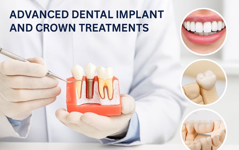 Dental Crowns are custom-made caps that cover and protect damaged or weakened teeth. They are used when a tooth no longer has enough healthy structure to support a filling. A crown restores the tooth’s full shape, size, and strength—ensuring it looks and functions just like a natural tooth.