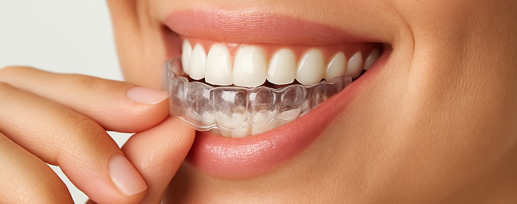 A night guard is a specially designed appliance that acts as a protective barrier between the upper and lower teeth, preventing the harmful effects of teeth grinding (bruxism) and clenching during sleep. Made from strong yet comfortable materials, night guards help reduce jaw pain, prevent enamel wear, and protect your teeth from long-term damage — ensuring you wake up without discomfort or tension.